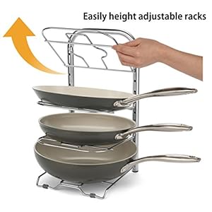 BTH Height Adjustable 12-Inch Skillet Pan Pot Organizer Rack Large frying Pan and Pot Kitchenware Cookware Rack Holder Shelves Kitchen Cabinet Countertop Storage Solution Stainless Steel
