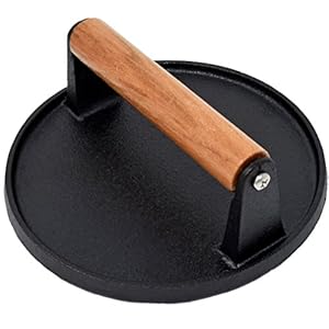 Evelots Cast Iron Bacon Press/Burger Smasher/Grilled Cheese-Heavy Duty-Frying Pan/BBQ Grill/Griddle-Wood Handle, 7…