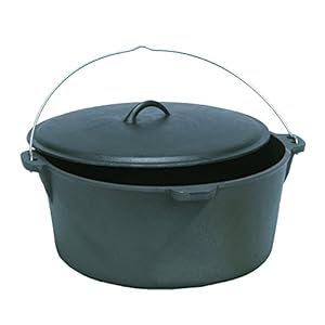 Texsport Cast Iron Dutch Oven with, Lid, Dual Handles and Easy Lift Wire Handle.