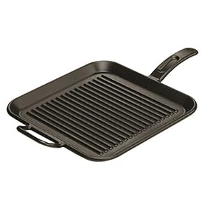 12-inch pre-seasoned cast-iron square grill pan; raised ridges allow fat to drain
