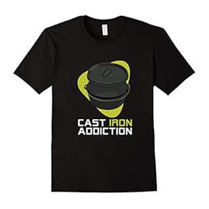 A perfect gift tee shirt if you love recipes and cooking in a cast iron skillet or camping dutch oven.