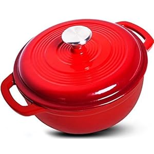 Enameled Cast Iron Dutch Oven – Red Color with Lid, 3.2-quart – by Utopia Kitchen